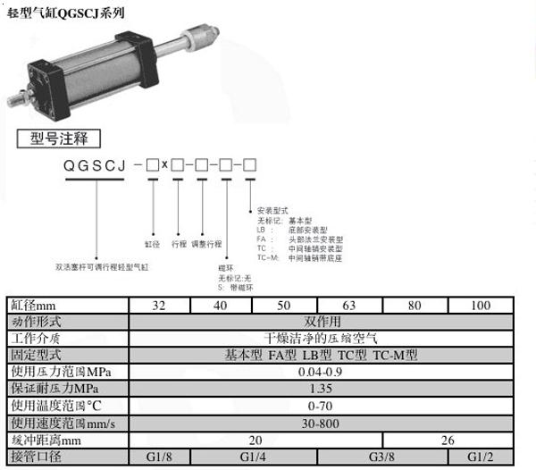 輕型氣缸QGSCJ雙活塞杆 可調行程輕型氣缸